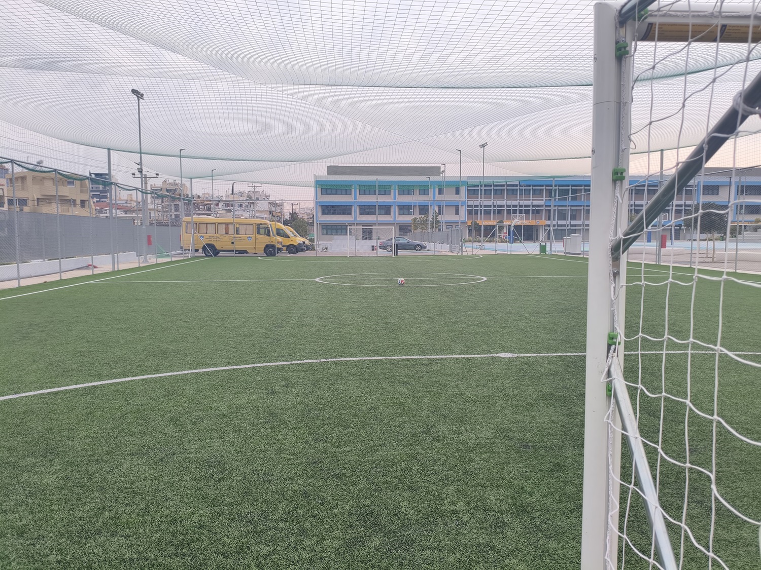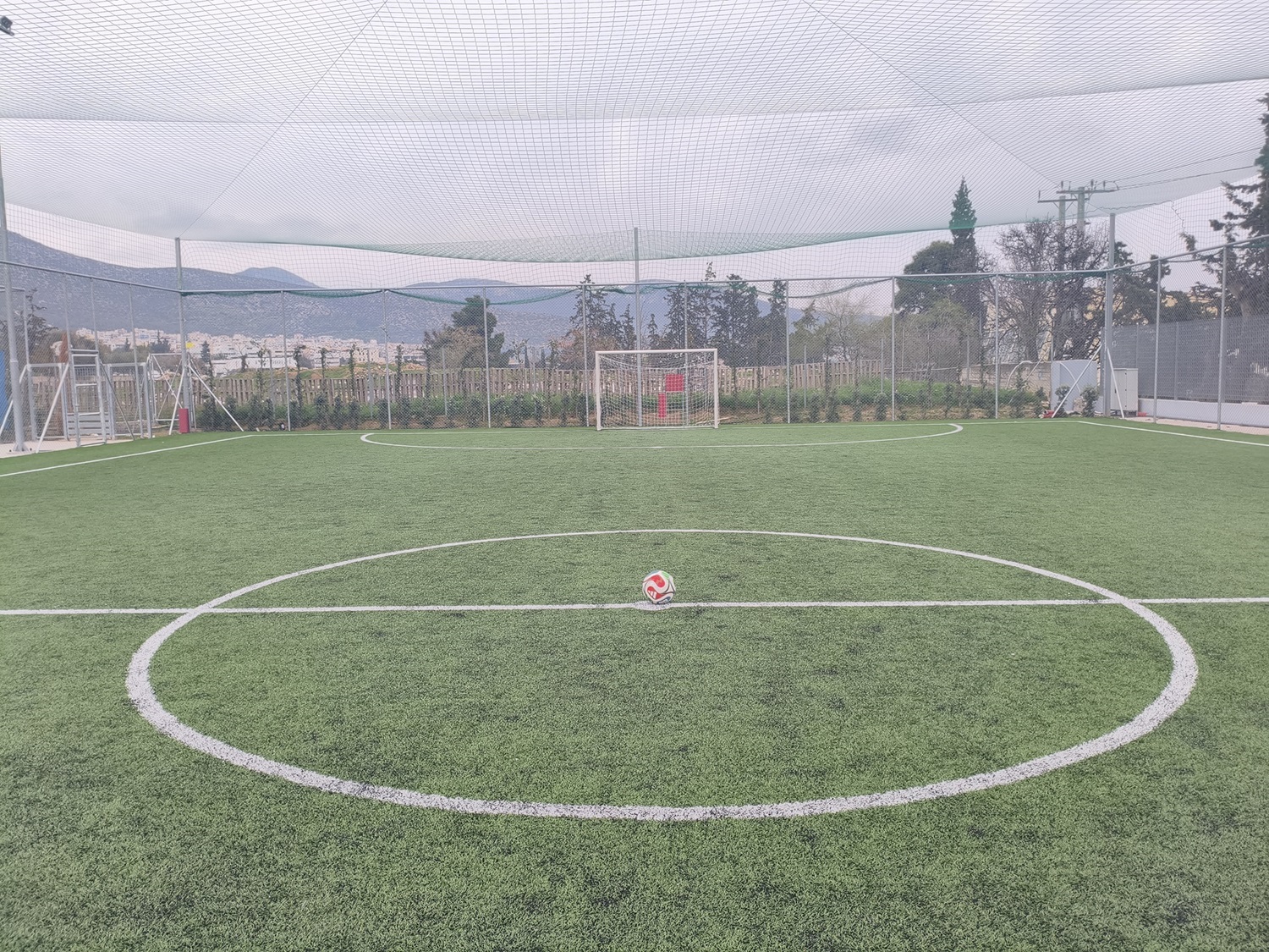 Σύγχρονο γήπεδο ποδοσφαίρου 5×5 με συνθετικό χλοοτάπητα τελευταίας γενιάς, ιδανικό για φιλικούς αγώνες και προπονήσεις. Σχεδιασμένο για άνετο και ασφαλές παιχνίδι, προσφέρει μια ολοκληρωμένη εμπειρία για όλες τις ηλικίες και επίπεδα.